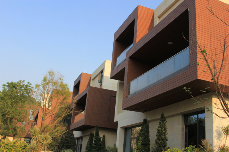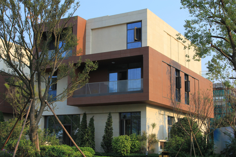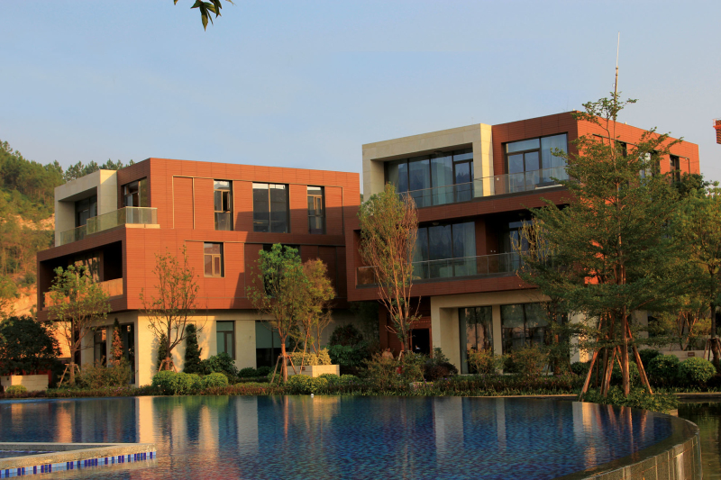 福州宏匯蝶泉灣別墅群位于福州貴安,敖江北岸,于2014年6月竣工,陶板幕墻總面積為50000㎡,項目采用灰色和咖啡色系槽面陶土板。宏匯·蝶泉灣是福建宏匯置業有限公司重金打造的首個項目,隸屬于貴安溫泉板塊。項目定位為高端現代別墅度假生活區。