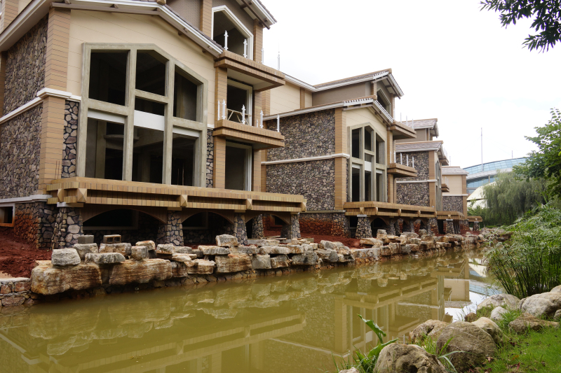 項目前面是已經建成的中房蔚藍海岸小區和大慶二區,有銀行、超市、酒店、餐飲等設施;西邊是潮汐湖,北邊是規劃當中的步行商業街,另有通往市里的銀金大道。