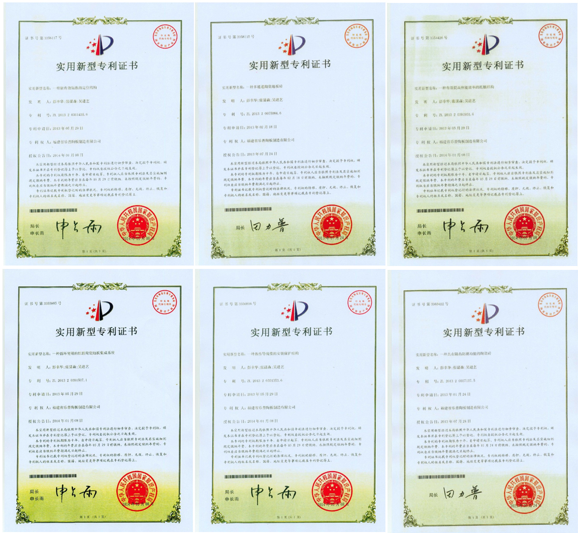 福建省樂普陶板制造有限公司榮獲12項(xiàng)國家發(fā)明專利